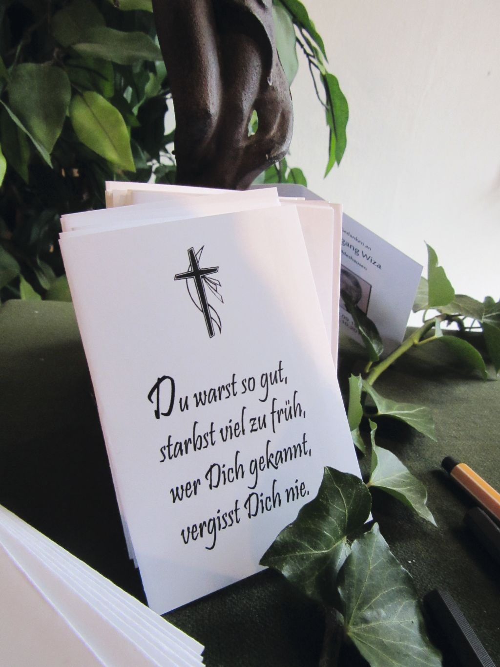 Trauerbriefe und Danksagungskarten sind eine würdevolle Möglichkeit, Freunde und Bekannte über den Verlust eines geliebten Menschen zu informieren und Dank für ihre Anteilnahme auszudrücken. Wir gestalten und drucken Ihre Trauerpost direkt in unserem Haus – von der Formulierung über das Design bis zum Versand. Auf Wunsch erstellen wir auch Traueranzeigen und übernehmen die Veröffentlichung in den regionalen Zeitungen Ihrer Wahl.